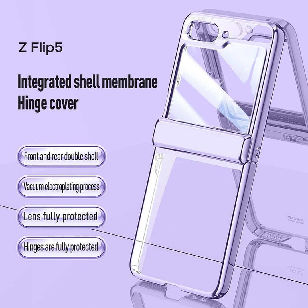 Material: Durable PC and Hinge Full Coverage construction protects your Samsung Galaxy Z Flip 5 against scratches, bumps and shocks in daily life. Plating and Transparent, excellent textured feeling, makes your phone look more unique and attractive.